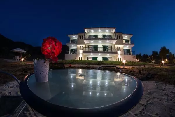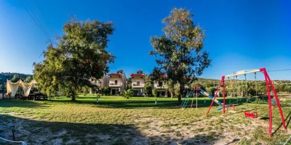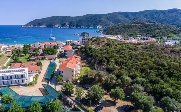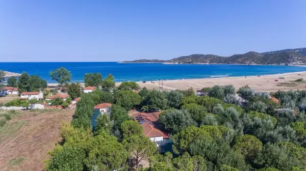 Μπροστά της υπάρχει η μεγάλη παραλία του Αι Γιάννη και γύρω της υπάρχουν πολλοί κολπίσκοι και μικρές πανέμορφες παραλίες.