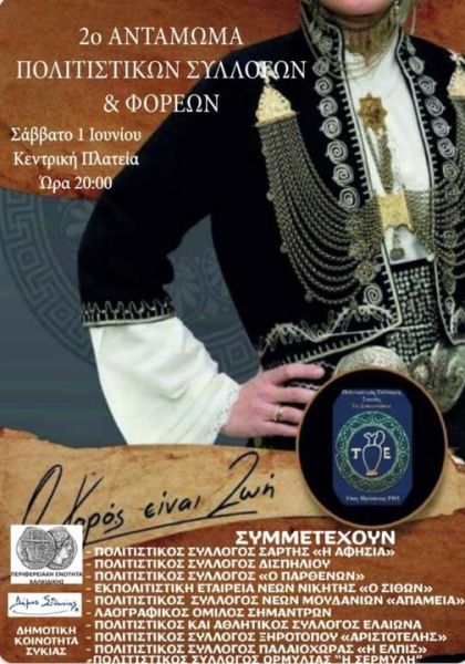 2ο Αντάμωμα Πολιτιστικών Συλλόγων και Φορέων στη Συκιά. Στις 1/6 και ώρα 20:00 μ.μ θα λάβει χώρα το 2ο Αντάμωμα Πολιτιστικών Συλλόγων και Φορέων στην κεντρική πλατεία της Συκιάς. Σύλλογοι και χορευτικές ομάδες από την περιοχή της Χαλκιδικής, της Κ ...